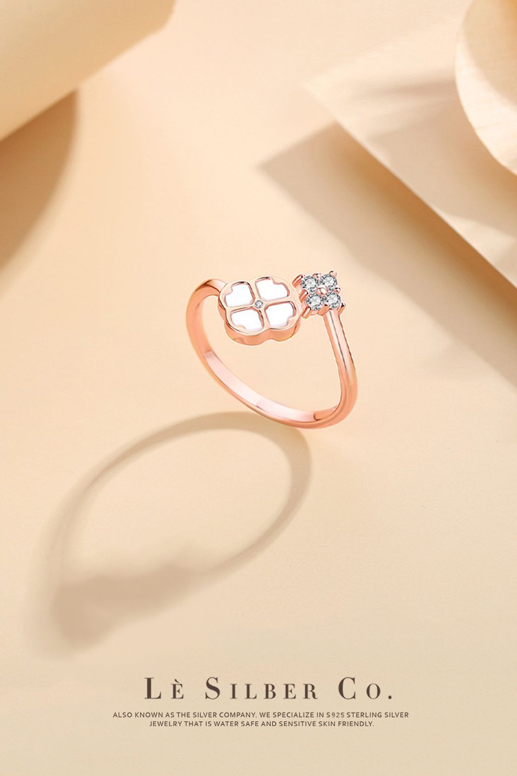 Lè Silber Co.S925 - Mother of Pearl Clover Open Ring