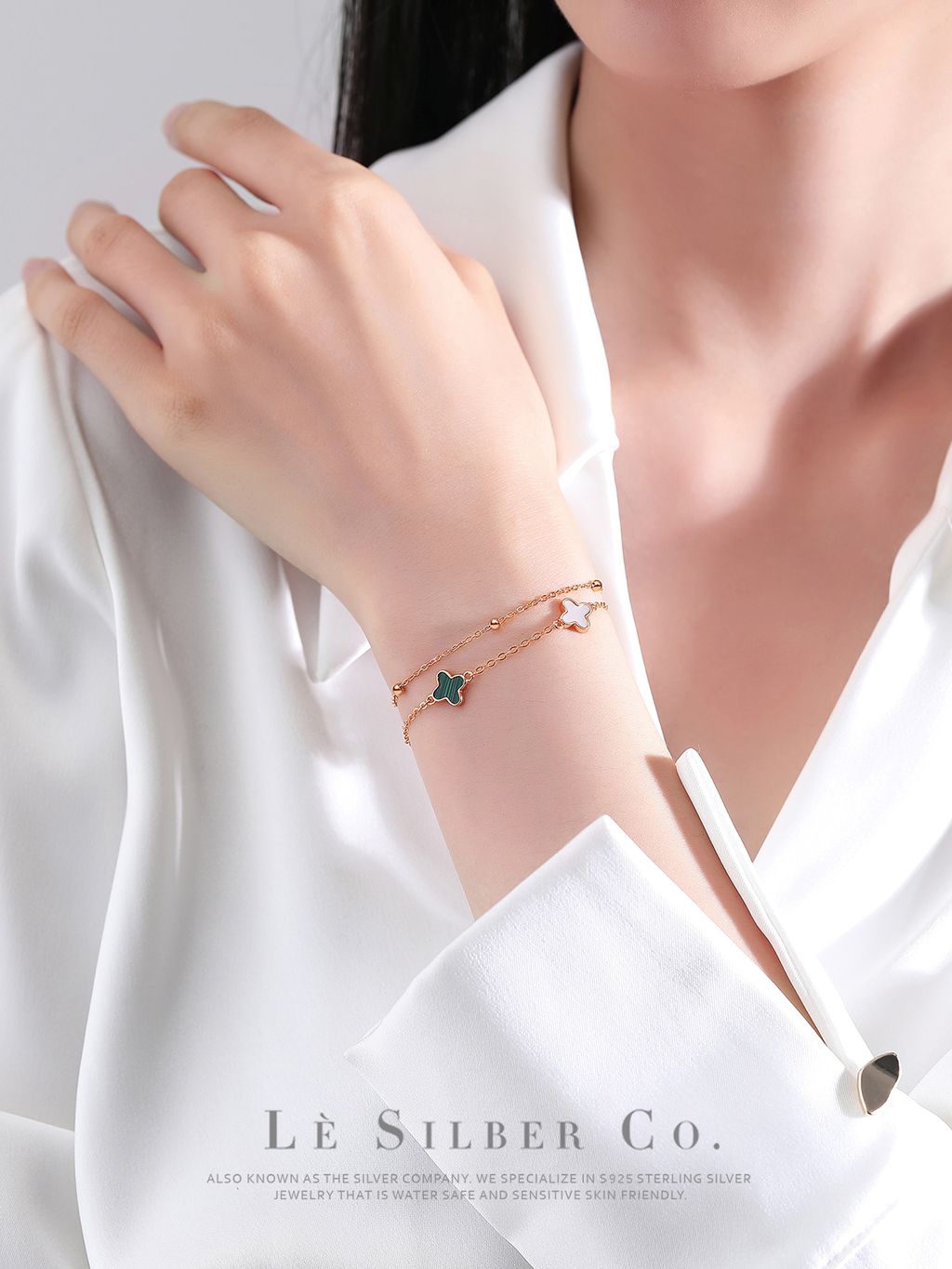 Lè Silber Co.S925 - Day & Night Lucky Clover Duo Layered Bracelet