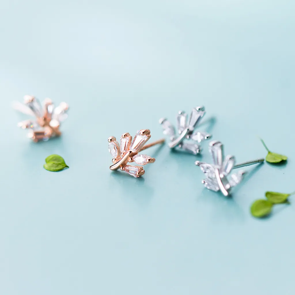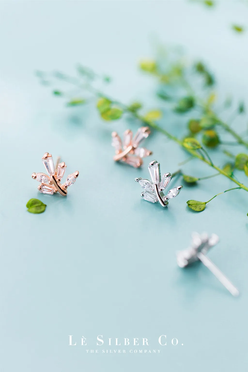 Lè Silber Co.S925 - Emerald Diamond Leaf Studs Earrings